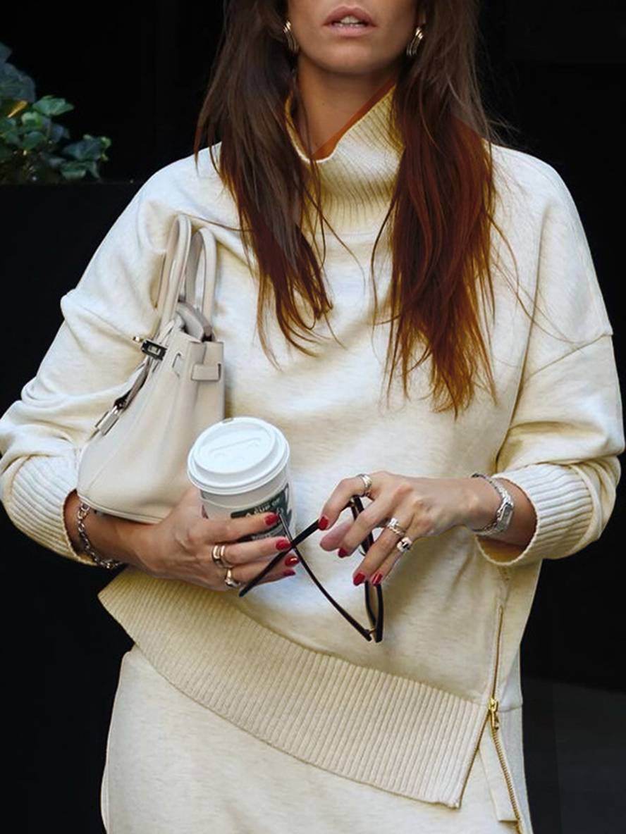 Découvrez l'équilibre parfait entre matière, coupe et fonctionnalité avec Cocolii ensembles avec pantalon unicolore col roulé col montant manches longue femme élégant sport décontracté ample | KONF.